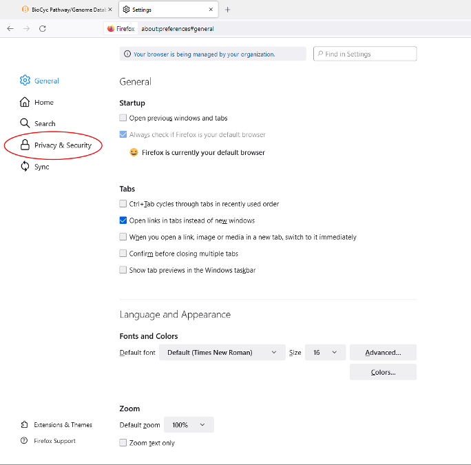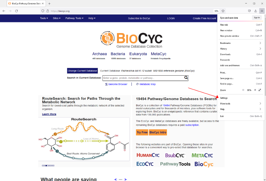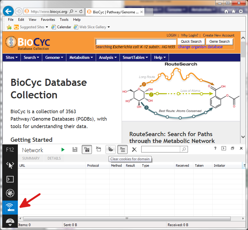 - Go to biocyc.org (or ecocyc.org etc) in IE.